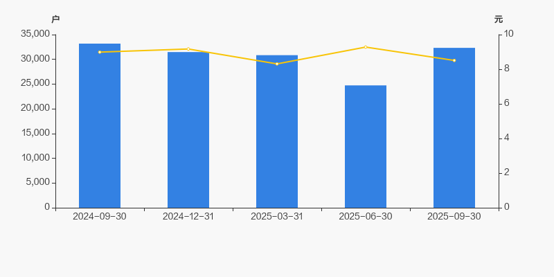 2024年9月30日至今,公司股东户数有所下降,区间跌幅为2.59%。2024年9月30日至2025年9月30日区间股价下降5.36%。