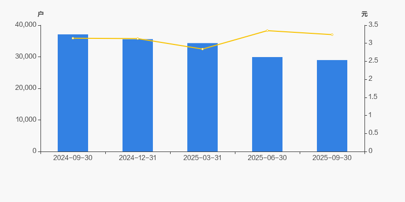 截至2025年9月30日,公司最新总股本为8.64亿股,且均为流通股。户均持有流通股数量由上期的2.89万股上升至2.98万股,户均流通市值9.66万元。