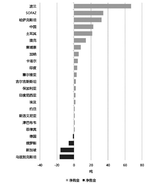 图为今年各国央行净购金量/售金量(单位:吨)