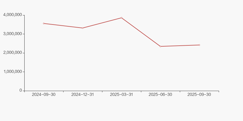 2024年9月30日至今,公司股东户数显著下降,区间跌幅为13.30%。2024年9月30日至2025年9月30日区间股价下降3.23%。