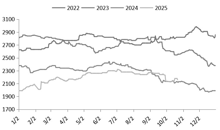 与新玉米供应增加形成鲜明对比的是,饲料及养殖行业对玉米的采购意愿持续低迷。10月中旬,笔者在吉林和辽宁玉米产区进行消费调研时发现,饲料企业虽然看好四季度的饲料消费,但是对玉米和小麦的采购非常谨慎。有饲料企业负责人表示,2025年是全国玉米大丰收的一年,从企业的调研数据来看,全国多地玉米单产增加幅度在8%~10%,这在历史上是较为少见的。在全球谷物大丰收和中国玉米产量、质量双增的情况下,企业采购更为谨慎。从采购的时间节点来看,需要满足两个条件:一是要等到华北玉米减产的数量最终确定,二是要等到东北玉米集中上市的时间来临。在这两个条件满足之前,企业更多采取随采随用策略,不会急于增加库存。