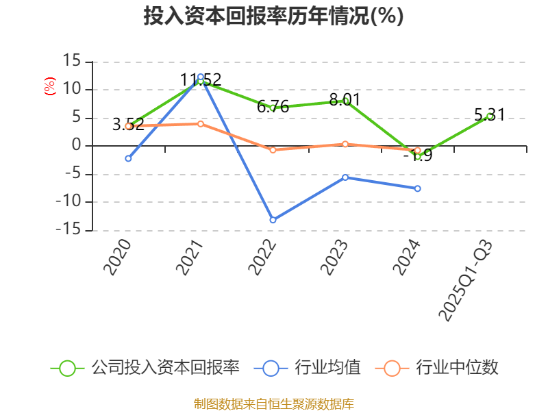 盈利能力方面, 2025年前三季度公司加权平均净资产收益率为4.21%,同比下降0.94个百分点。公司2025年前三季度投入资本回报率为5.31%,较上年同期下降0.77个百分点。