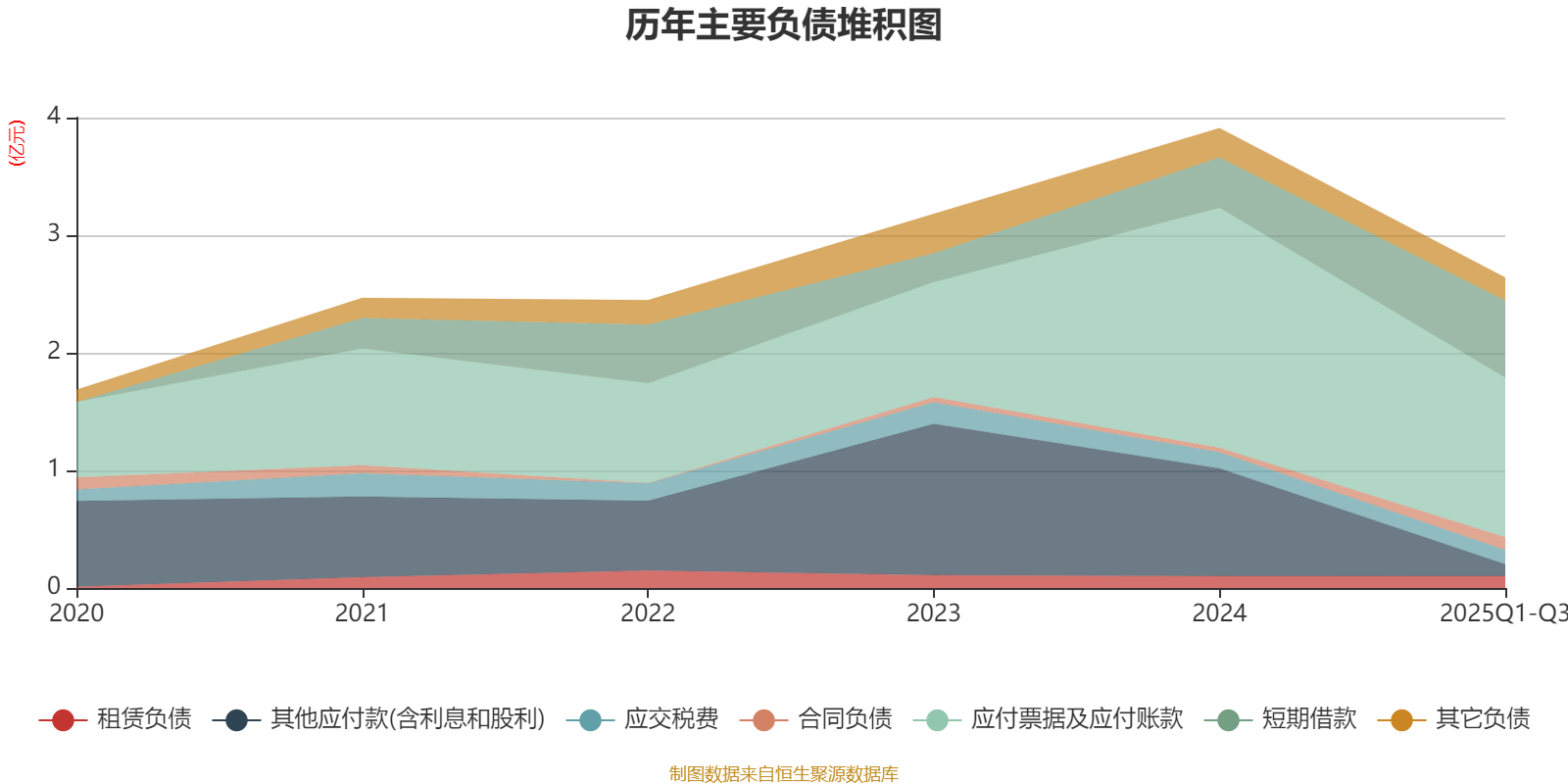 负债重大变化方面,截至2025年三季度末,公司其他应付款(含利息和股利)较上年末减少88.77%,占公司总资产比重下降7.15个百分点;应付票据及应付账款较上年末减少33.61%,占公司总资产比重下降5个百分点;短期借款较上年末增加53.51%,占公司总资产比重上升2.56个百分点;合同负债较上年末增加193.35%,占公司总资产比重上升0.73个百分点。