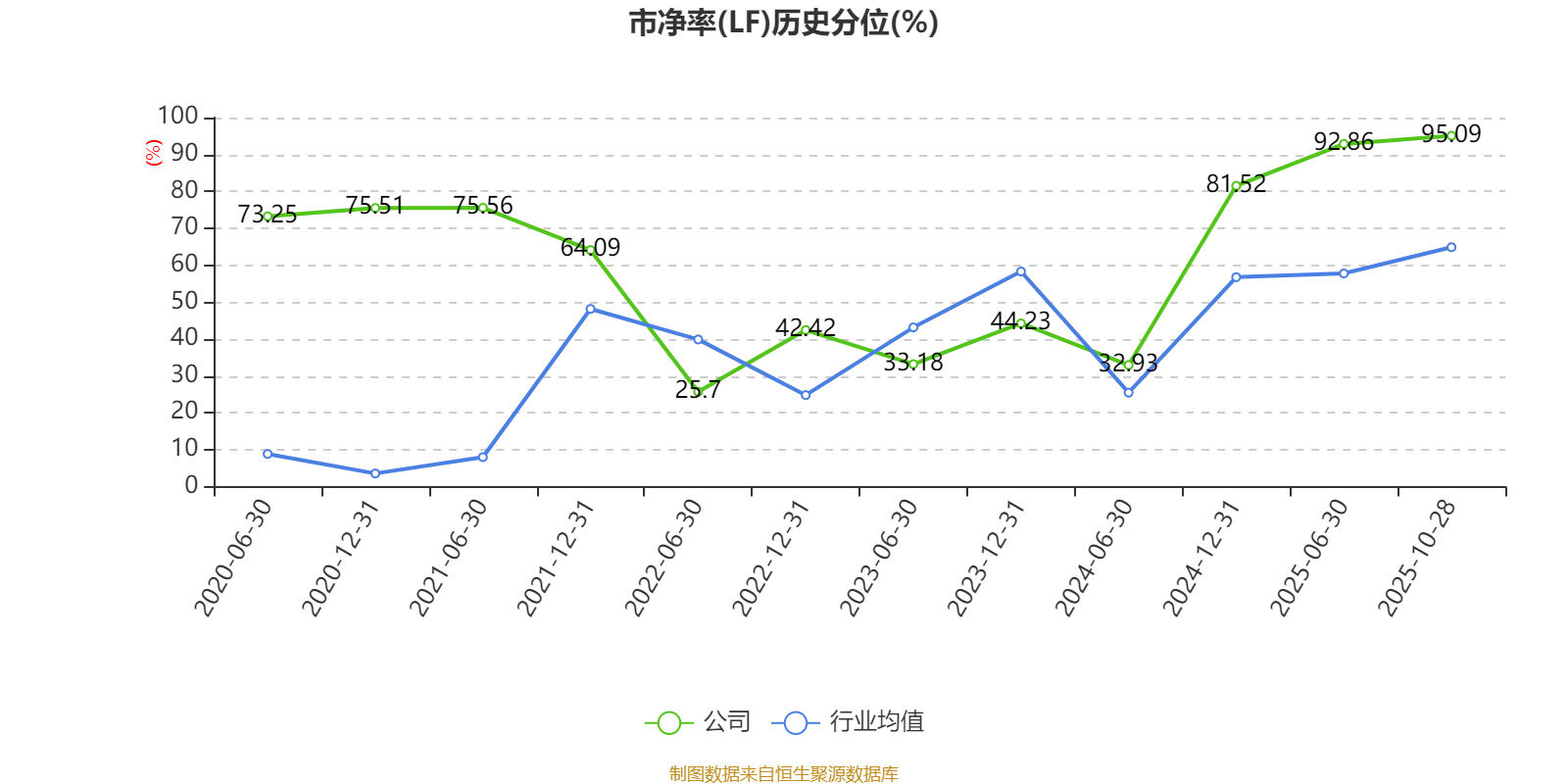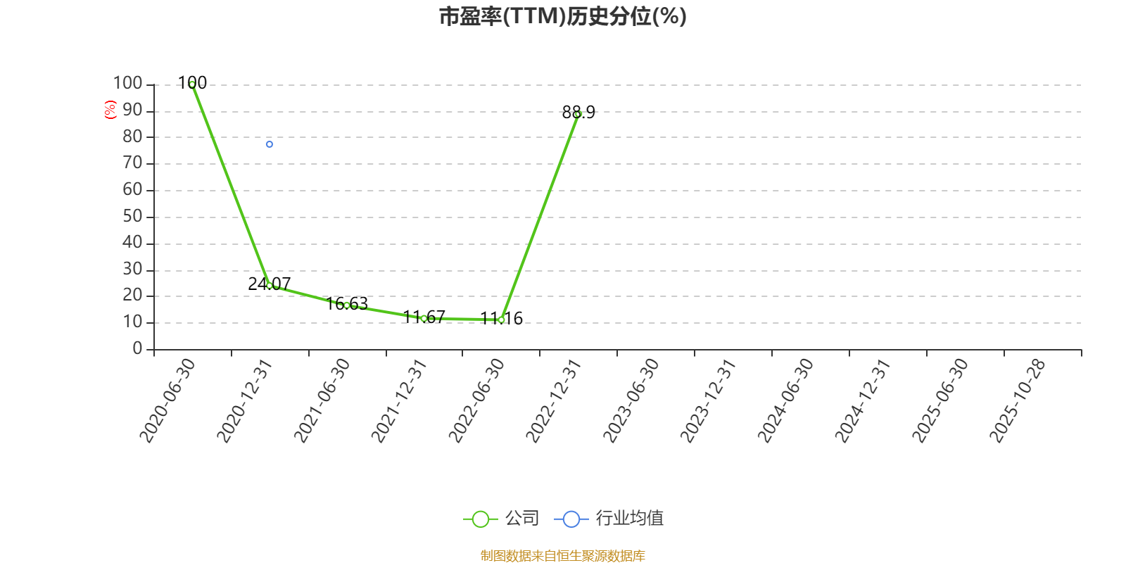 市盈率、市净率为负时,不显示当期分位数,会导致折线图中断。