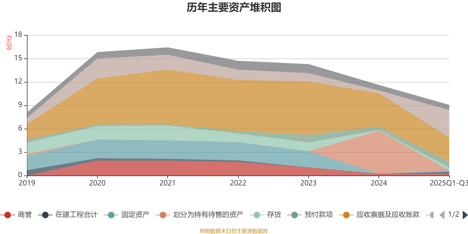 资产重大变化方面,截至2025年三季度末,公司划分为持有待售的资产较上年末减少100%,占公司总资产比重下降47.37个百分点;货币资金较上年末增加920.64%,占公司总资产比重上升35.79个百分点;预付款项较上年末增加86.11%,占公司总资产比重上升5.24个百分点;存货较上年末增加312.91%,占公司总资产比重上升3.03个百分点。