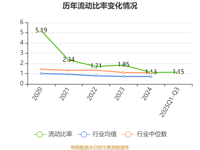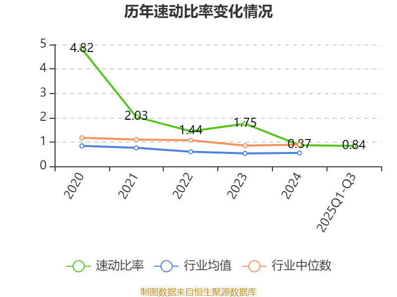 2025年前三季度,公司流动比率为1.15,速动比率为0.84。