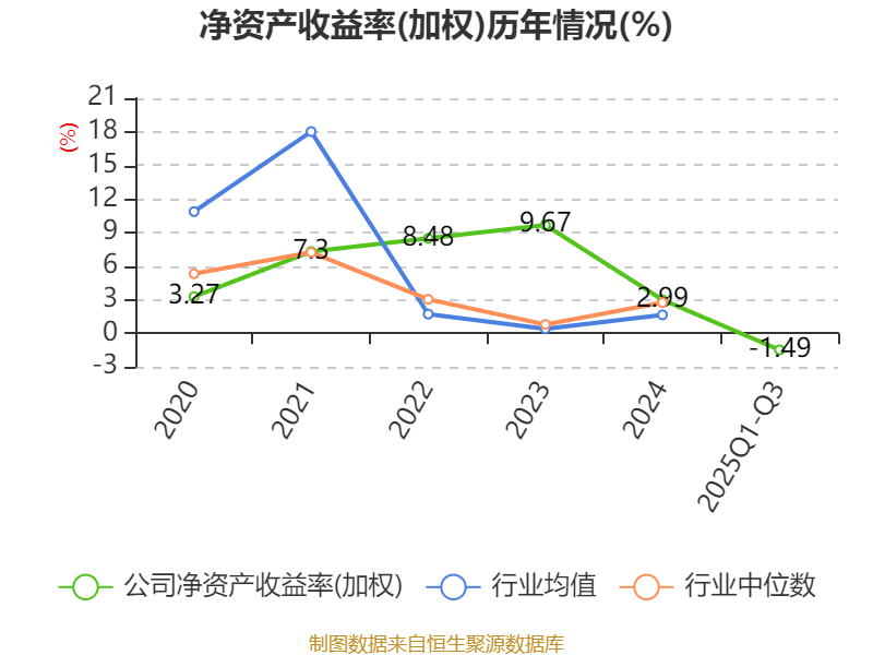 盈利能力方面, 2025年前三季度公司加权平均净资产收益率为-1.49%,同比下降4.91个百分点。公司2025年前三季度投入资本回报率为-0.28%,较上年同期下降2.72个百分点。