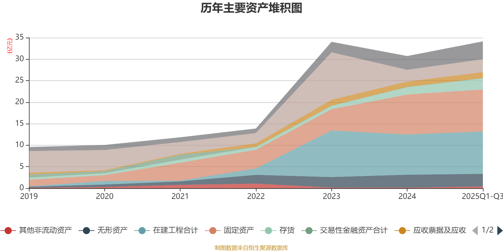 资产重大变化方面,截至2025年三季度末,公司存货较上年末增加49.02%,占公司总资产比重上升1.94个百分点;预付款项较上年末增加205.3%,占公司总资产比重上升1.78个百分点;在建工程合计较上年末增加5.24%,占公司总资产比重下降1.61个百分点;固定资产较上年末增加5.27%,占公司总资产比重下降1.59个百分点。