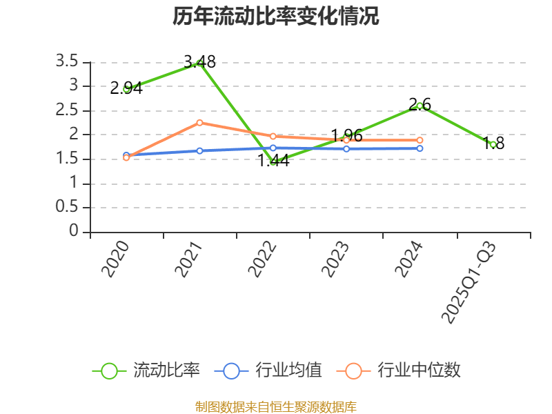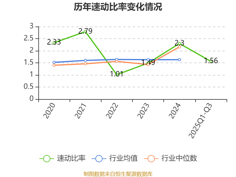2025年前三季度,公司流动比率为1.8,速动比率为1.56。