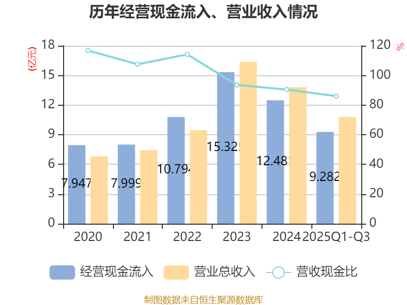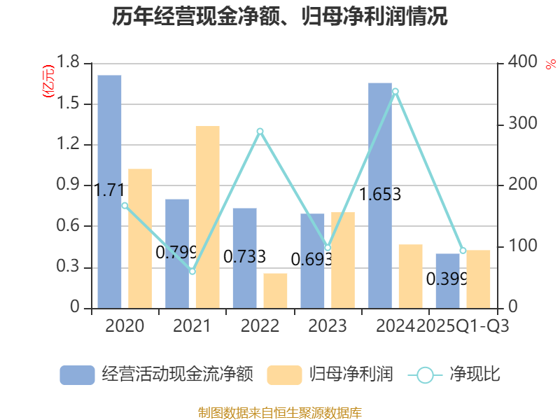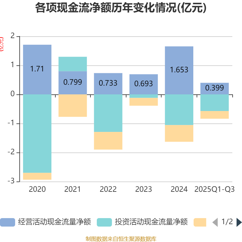 2025年前三季度,公司经营活动现金流净额为3990.28万元,同比下降29.6%;筹资活动现金流净额-2649.17万元,同比增加2329.01万元;投资活动现金流净额-5727.03万元,上年同期为-4218.43万元。
