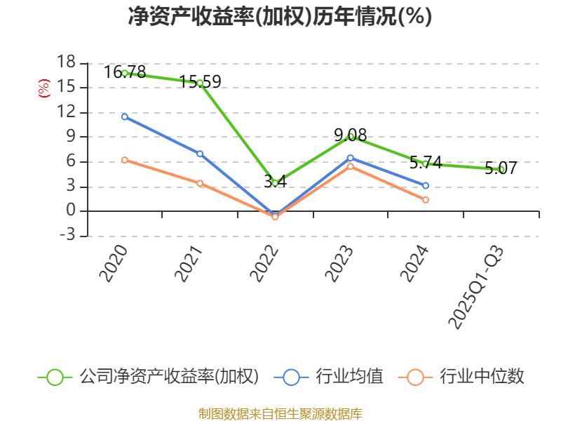 盈利能力方面, 2025年前三季度公司加权平均净资产收益率为5.07%,同比下降6.4个百分点。公司2025年前三季度投入资本回报率为4.42%,较上年同期下降6.64个百分点。