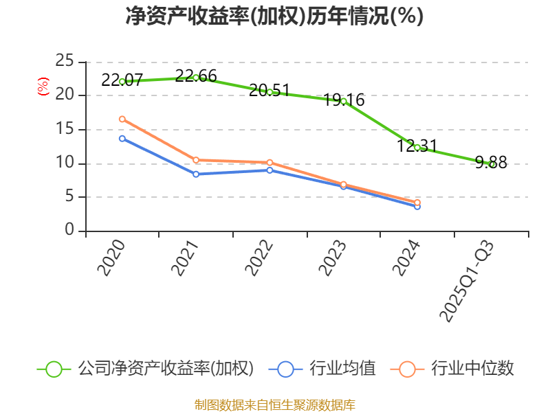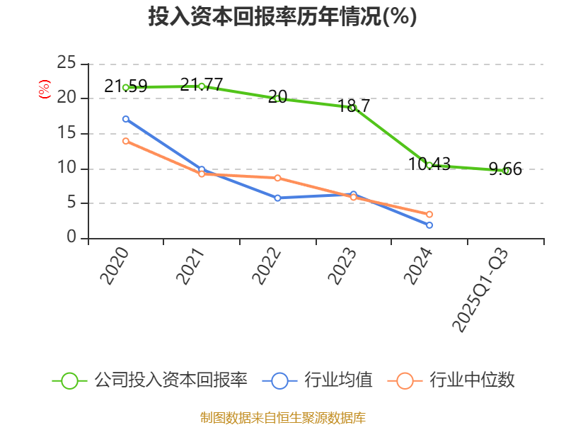 盈利能力方面, 2025年前三季度公司加权平均净资产收益率为9.88%,同比下降0.63个百分点。公司2025年前三季度投入资本回报率为9.66%,较上年同期下降0.05个百分点。