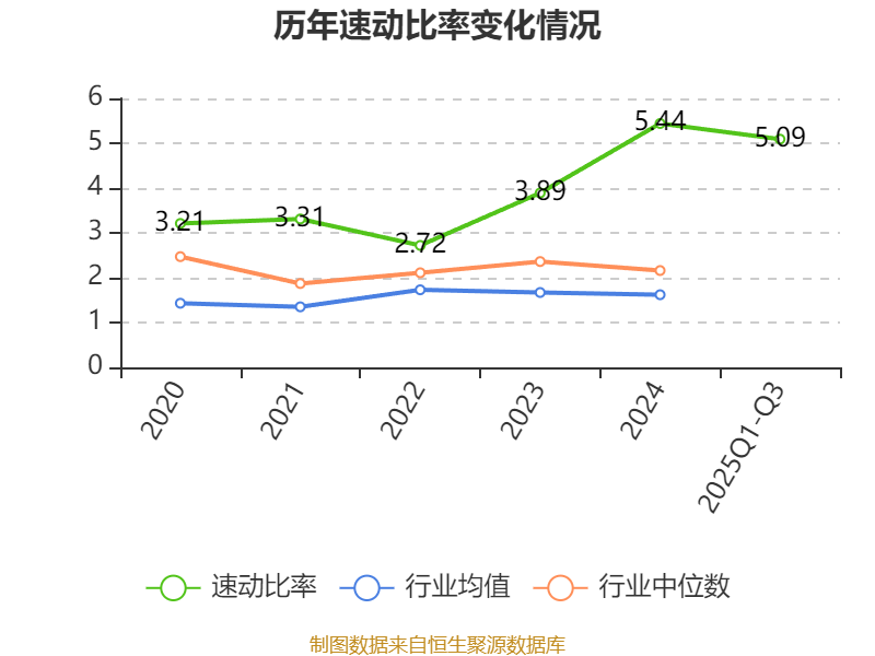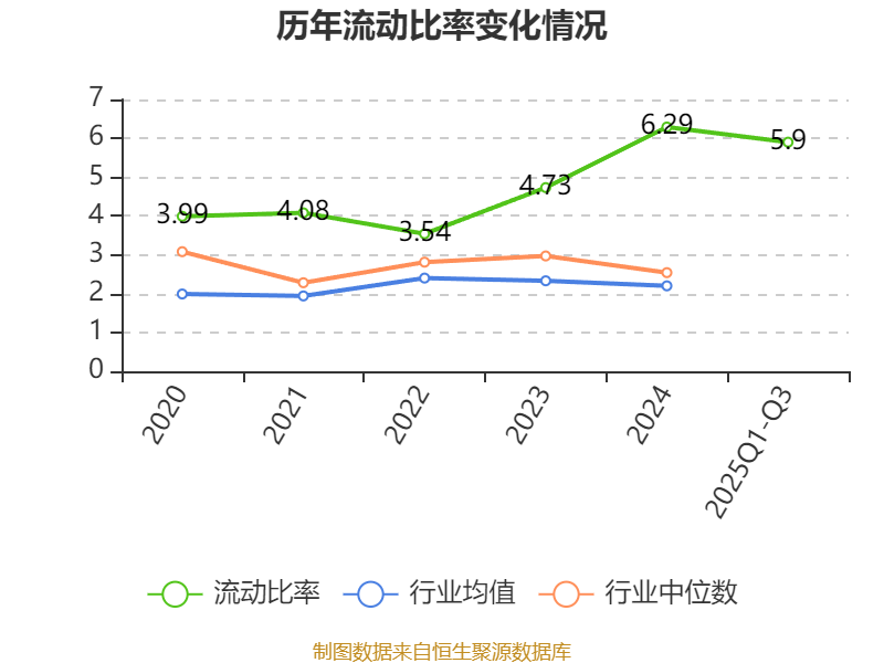 2025年前三季度,公司流动比率为5.9,速动比率为5.09。