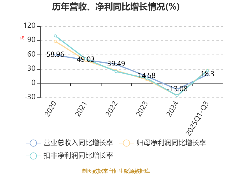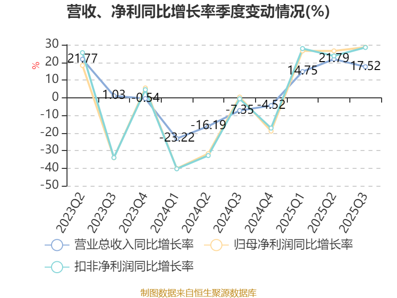中证智能财讯怡合达(301029)10月29日披露2025年第三季度报告。前三季度公司实现营业总收入21.97亿元,同比增长18.30%;归母净利润4.17亿元,同比增长27.16%;扣非净利润4.09亿元,同比增长26.41%;经营活动产生的现金流量净额为3.51亿元,同比下降42.38%;报告期内,怡合达基本每股收益为0.66元,加权平均净资产收益率为9.88%。