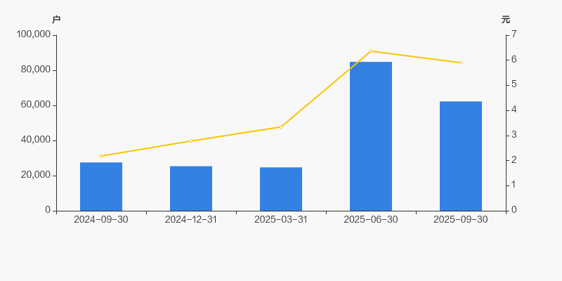 截至2025年9月30日,公司最新A股总股本为7.98亿股,其中流通股本为5.42亿股。户均持有流通股数量由上期的6391股上升至8703股,户均流通市值5.13万元。