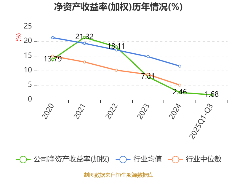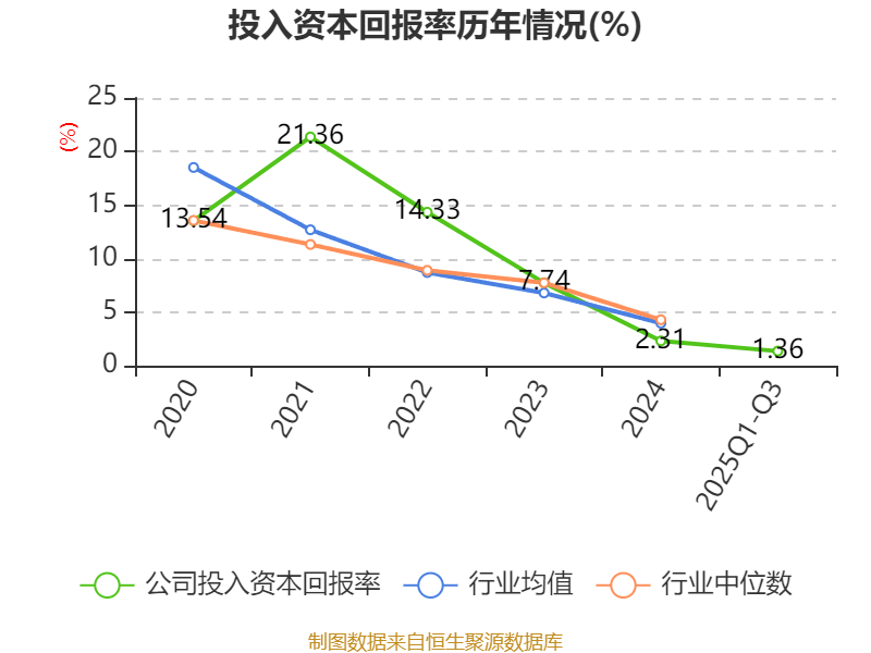 盈利能力方面, 2025年前三季度公司加权平均净资产收益率为1.68%,同比下降0.26个百分点。公司2025年前三季度投入资本回报率为1.36%,较上年同期下降0.34个百分点。