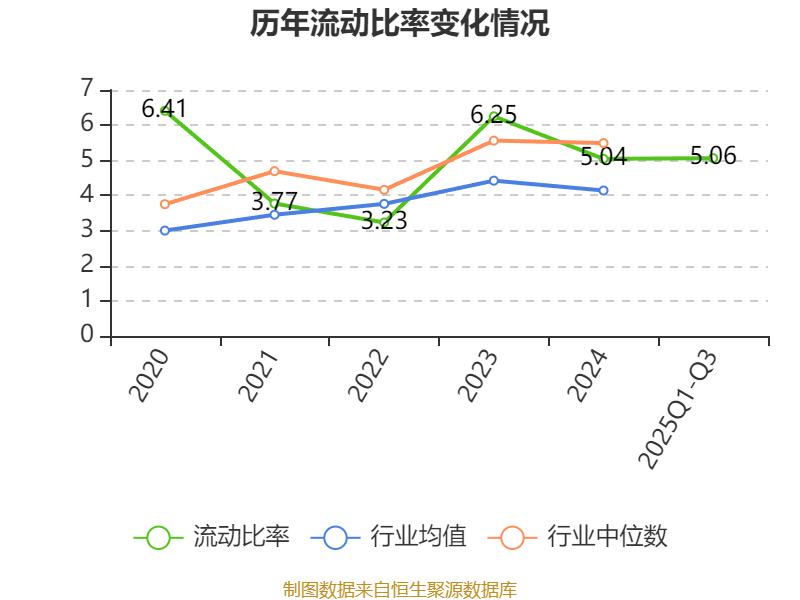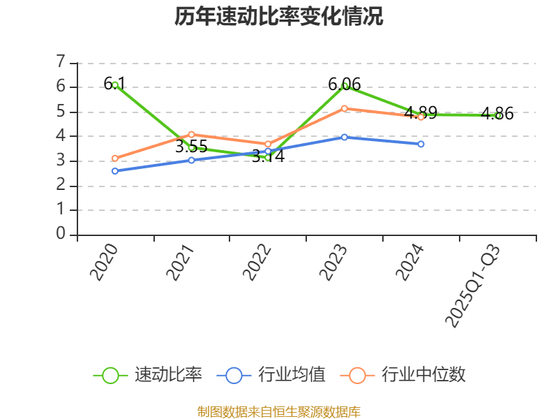 2025年前三季度,公司流动比率为5.06,速动比率为4.86。