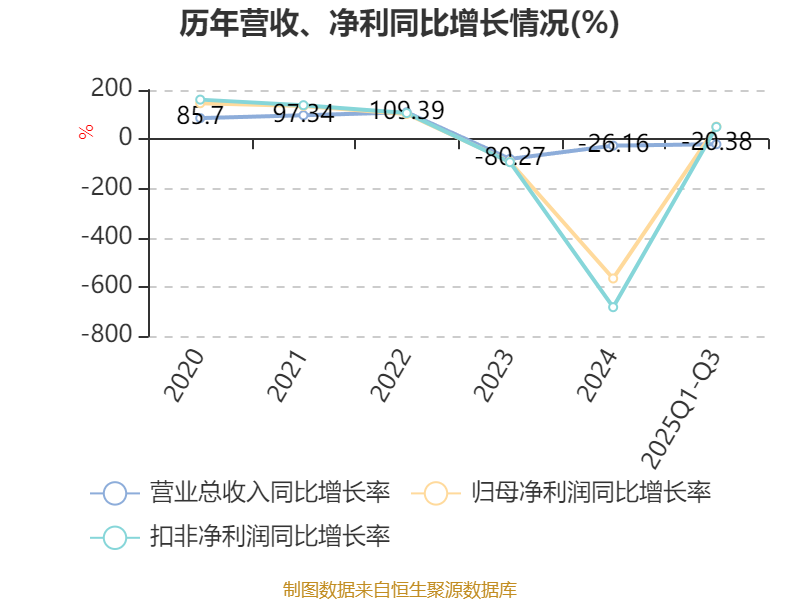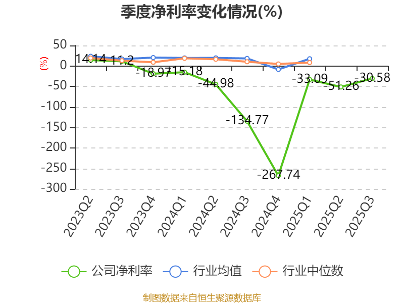 盈利能力方面, 2025年前三季度公司加权平均净资产收益率为-3.24%,同比上升2.51个百分点。公司2025年前三季度投入资本回报率为-4.73%,较上年同期上升4.97个百分点。