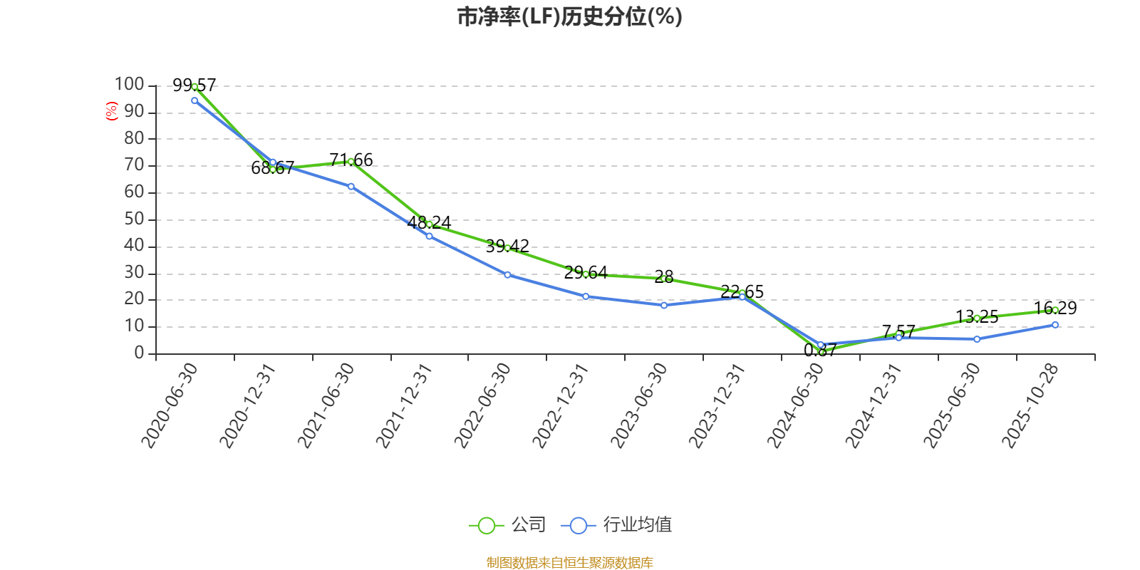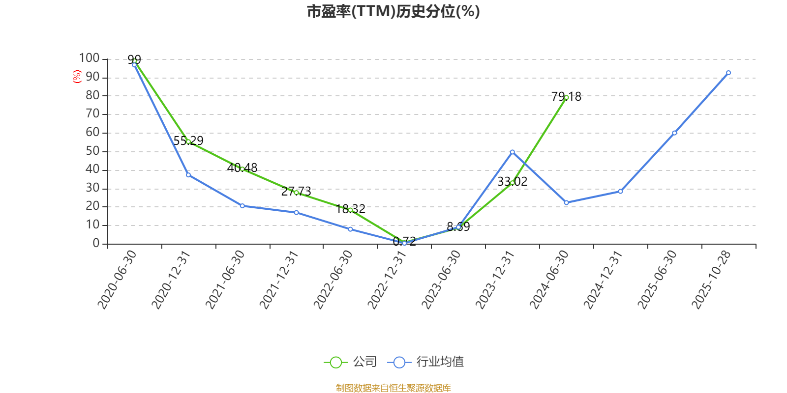 市盈率、市净率为负时,不显示当期分位数,会导致折线图中断。