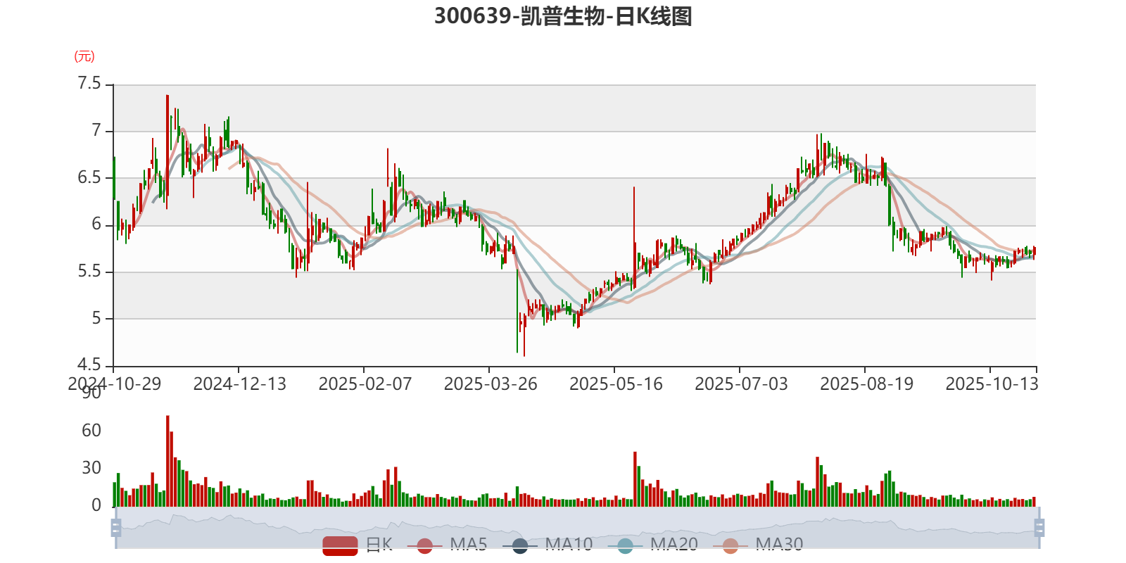 以10月28日收盘价计算,凯普生物目前市盈率(TTM)约为-7.15倍,市净率(LF)约0.97倍,市销率(TTM)约5.39倍。