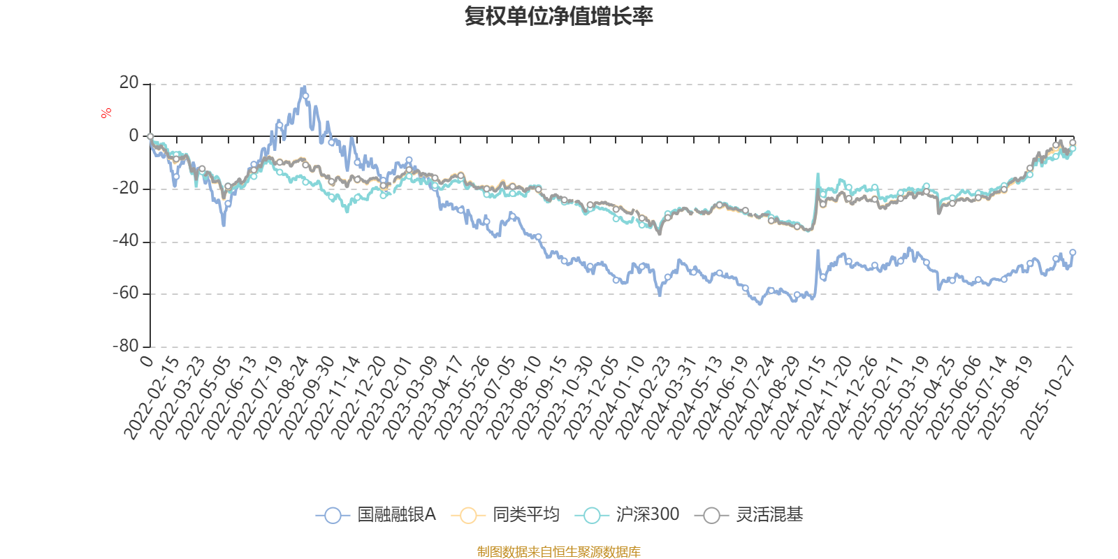 截至10月27日,国融融银A近三个月复权单位净值增长率为13.65%,位于同类可比基金579/1287;近半年复权单位净值增长率为23.64%,位于同类可比基金650/1287;近一年复权单位净值增长率为7.73%,位于同类可比基金1035/1287;近三年复权单位净值增长率为-39.62%,位于同类可比基金1279/1286。