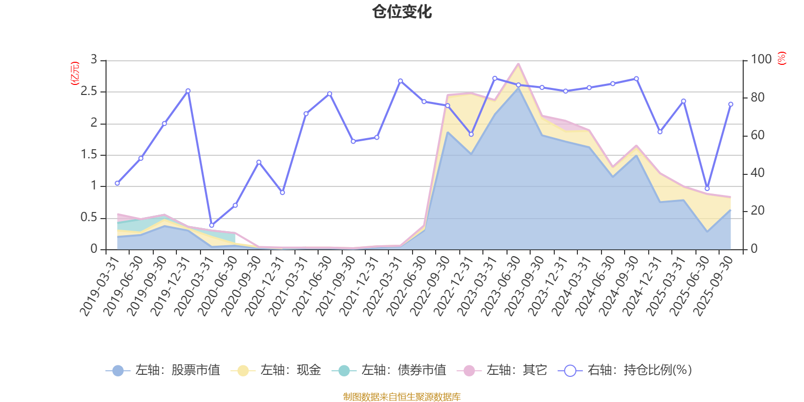 据定期报告数据统计,近三年平均股票仓位为76.74%,同类平均为72.35%。2023年一季度末基金达到90.47%的最高仓位,2020年一季度末最低,为12.8%。