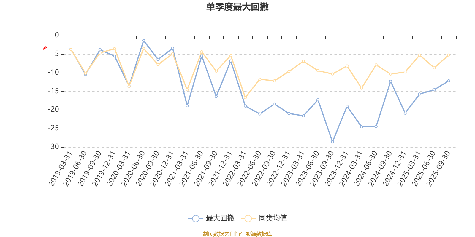 通过所选区间该基金净值增长率分位图,可以观察该基金与同类基金业绩比较情况。图为坐标原点到区间内某时点的净值增长率在同类基金中的分位数。