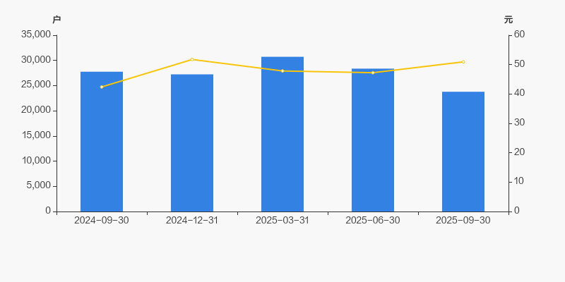 2024年9月30日至今,公司股东户数显著下降,区间跌幅为14.34%。2024年9月30日至2025年9月30日区间股价上涨20.12%。