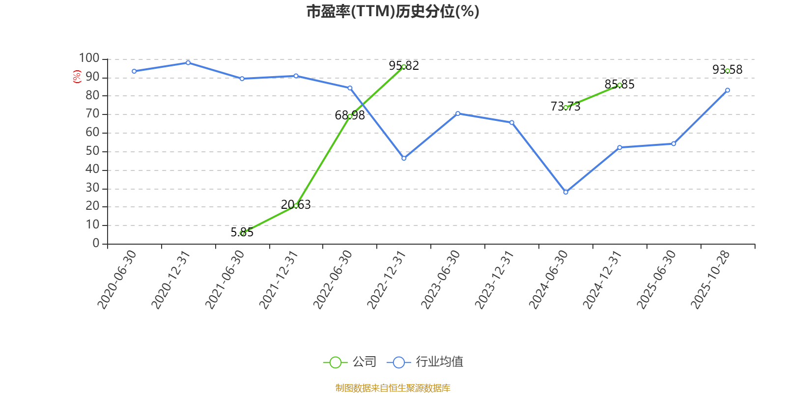 市盈率、市净率为负时,不显示当期分位数,会导致折线图中断。