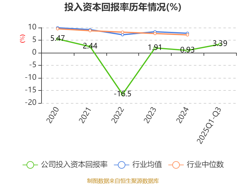 盈利能力方面, 2025年前三季度公司加权平均净资产收益率为5.75%,同比上升2.82个百分点。公司2025年前三季度投入资本回报率为3.39%,较上年同期上升1.3个百分点。