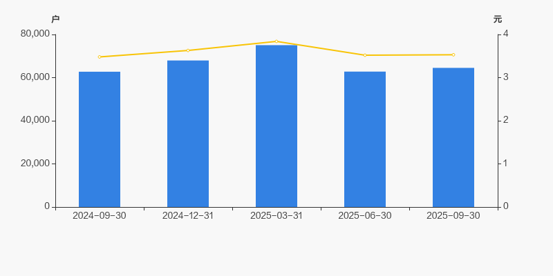 截至2025年9月30日,公司最新总股本为8.32亿股,其中流通股本为6.5亿股。户均持有流通股数量由上期的1.04万股下降至1.01万股,户均流通市值3.56万元。