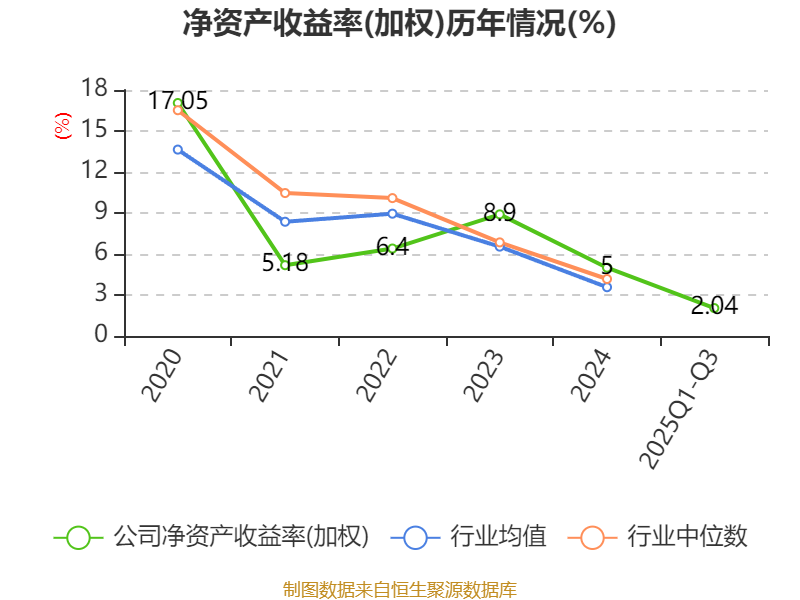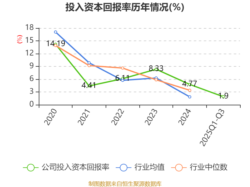 盈利能力方面, 2025年前三季度公司加权平均净资产收益率为2.04%,同比下降1.05个百分点。公司2025年前三季度投入资本回报率为1.9%,较上年同期下降0.88个百分点。