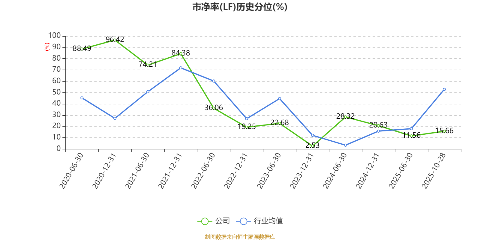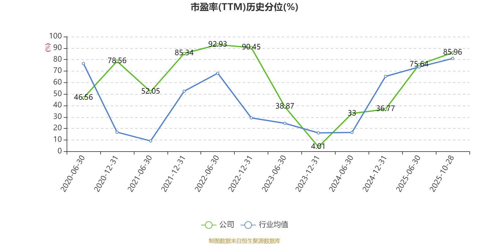市盈率、市净率为负时,不显示当期分位数,会导致折线图中断。