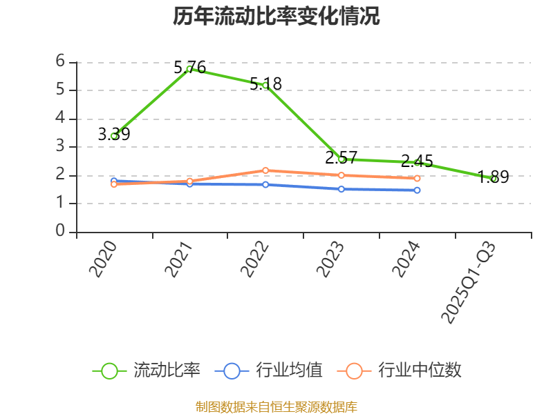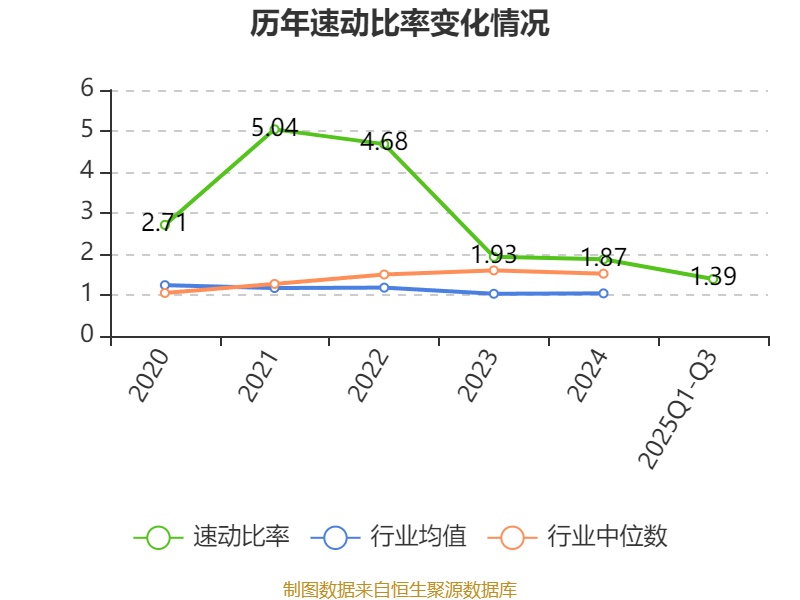2025年前三季度,公司流动比率为1.89,速动比率为1.39。