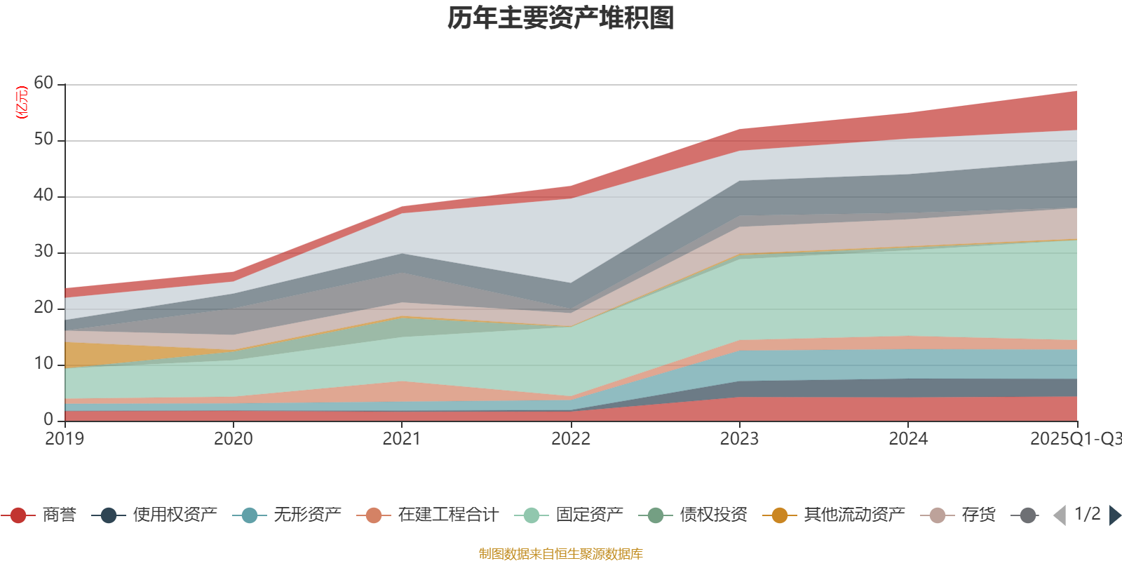 资产重大变化方面,截至2025年三季度末,公司长期股权投资占公司总资产的2.71%,上年末为0;固定资产较上年末增加17.08%,占公司总资产比重上升2.57个百分点;货币资金较上年末减少14.86%,占公司总资产比重下降2.38个百分点;交易性金融资产合计较上年末减少90.97%,占公司总资产比重下降1.92个百分点。