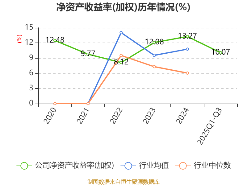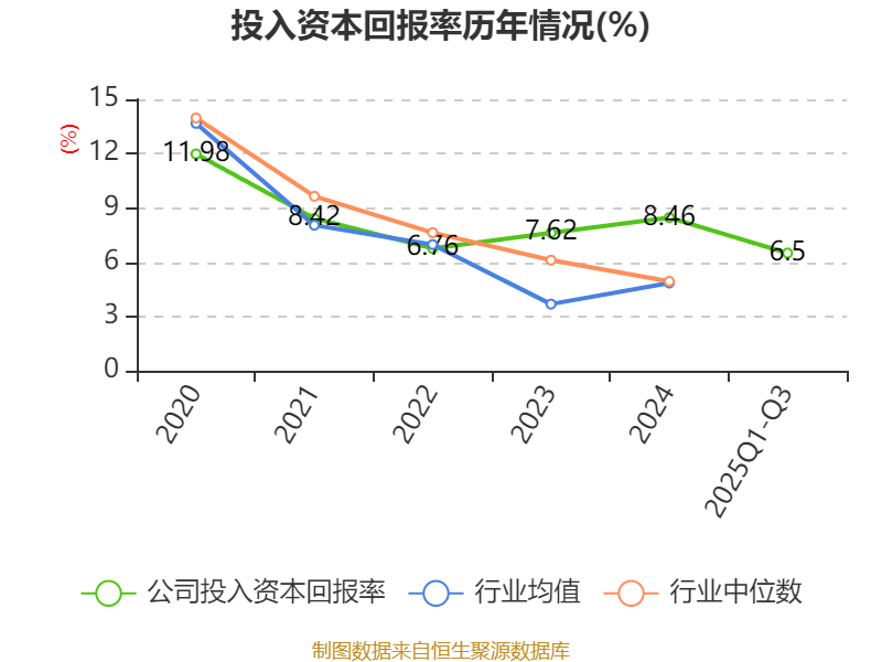 盈利能力方面, 2025年前三季度公司加权平均净资产收益率为10.07%,同比上升0.24个百分点。公司2025年前三季度投入资本回报率为6.5%,较上年同期下降0.31个百分点。