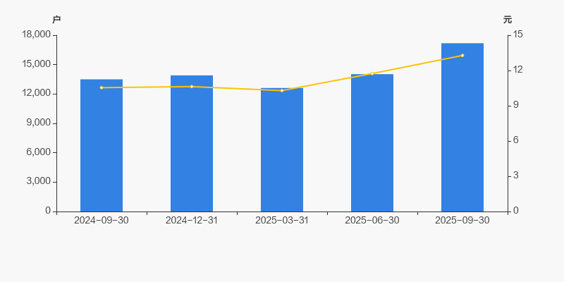 截至2025年9月30日,公司最新总股本为1.72亿股,且均为流通股。户均持有流通股数量由上期的1.23万股下降至1万股,户均流通市值13.32万元。