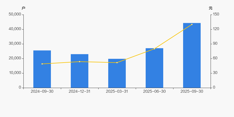 2024年9月30日至今,公司股东户数显著大幅增长,区间涨幅达73.54%。2024年9月30日至2025年9月30日区间股价上涨165.62%。