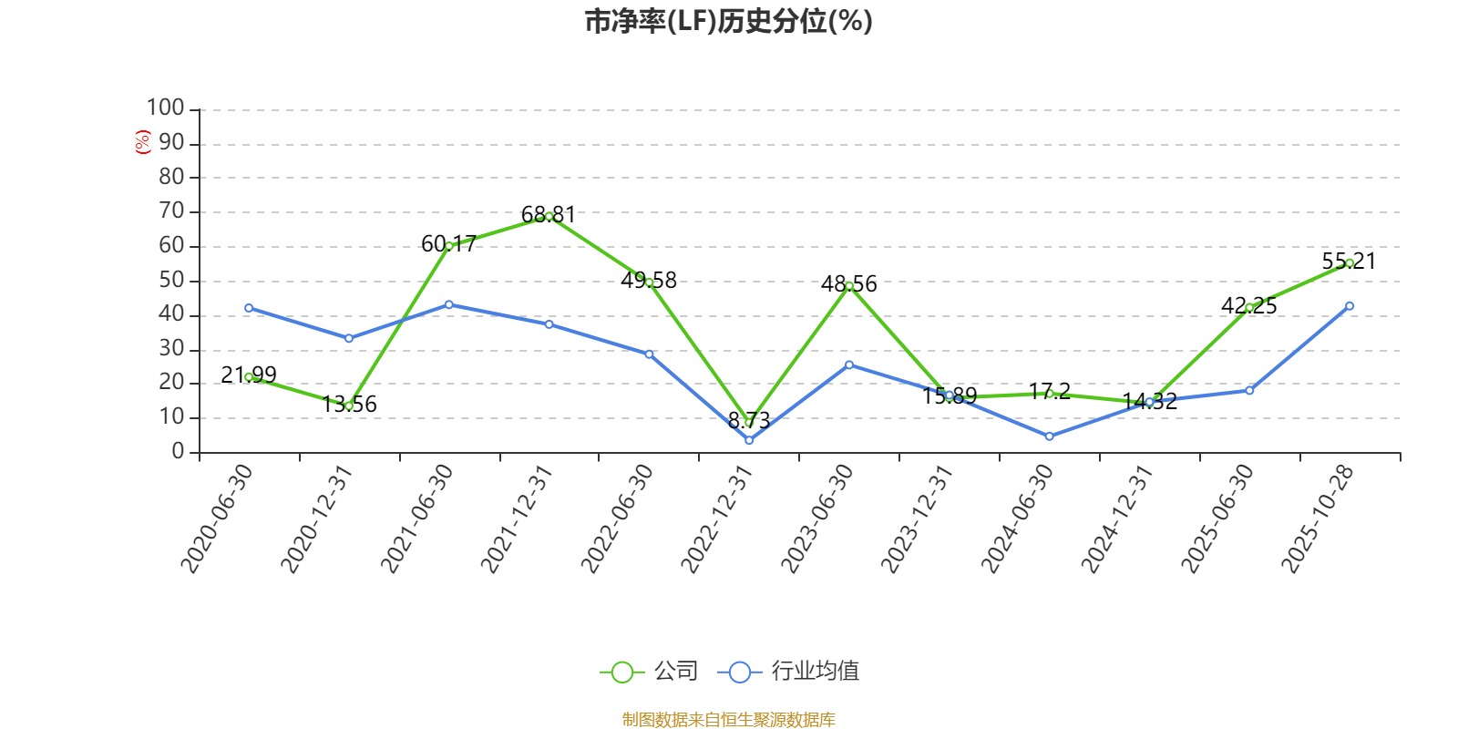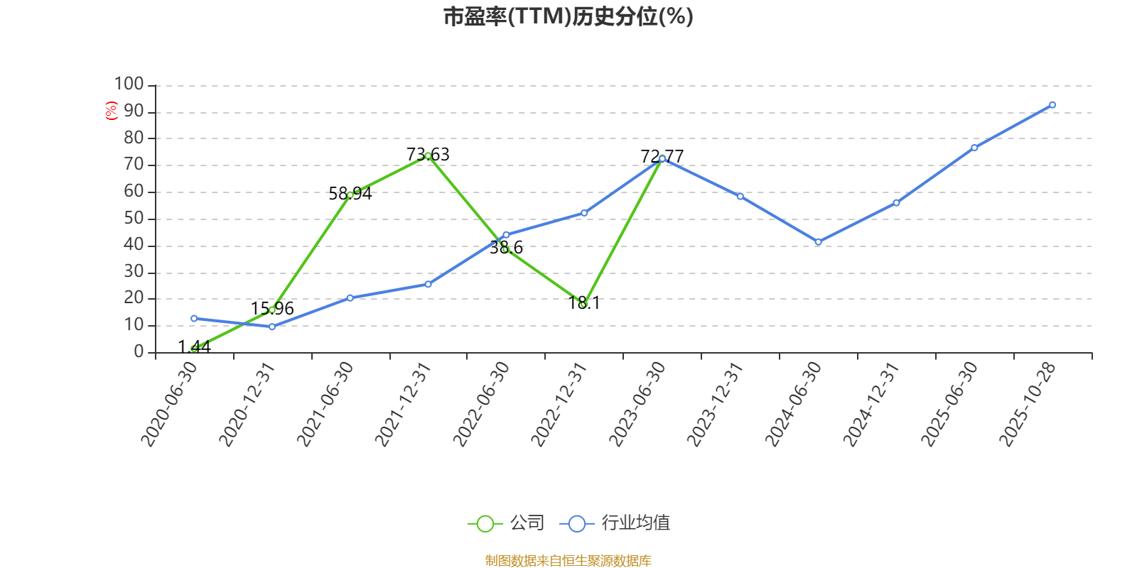 市盈率、市净率为负时,不显示当期分位数,会导致折线图中断。