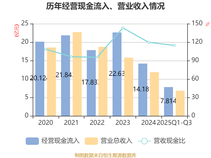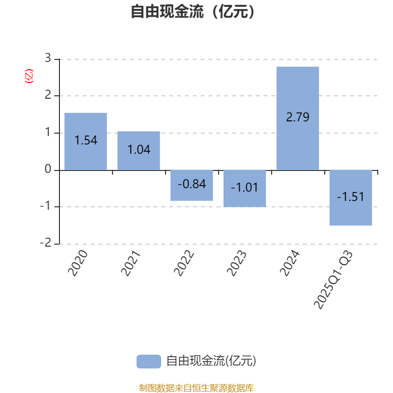 2025年前三季度,公司经营活动现金流净额为1321.81万元,同比下降36.24%;筹资活动现金流净额-1.1亿元,同比减少2761.91万元;投资活动现金流净额-6003.74万元,上年同期为7824.31万元。