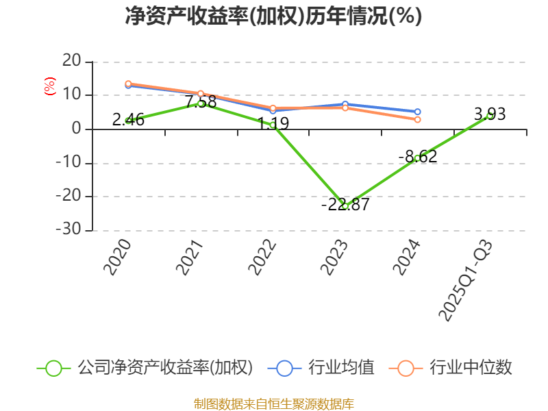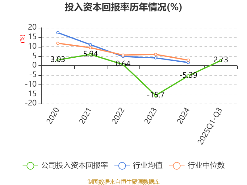 盈利能力方面, 2025年前三季度公司加权平均净资产收益率为3.93%,同比上升5.36个百分点。公司2025年前三季度投入资本回报率为2.73%,较上年同期上升24.87个百分点。