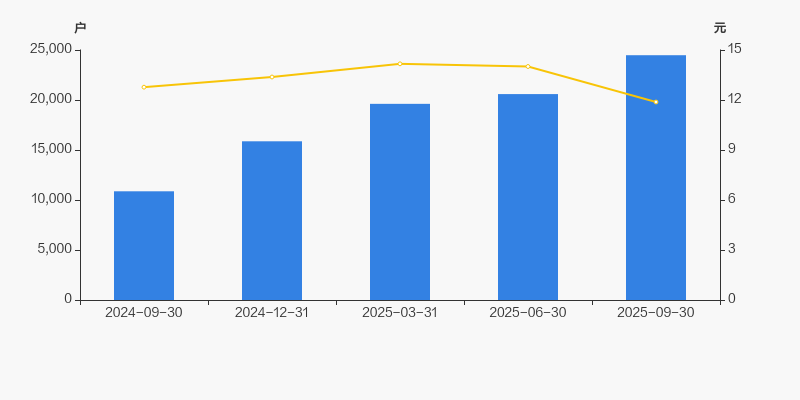 自2024年9月30日以来,公司股东户数连续4期上涨,截至目前增幅为125.17%。2024年9月30日至2025年9月30日区间股价下降6.93%。