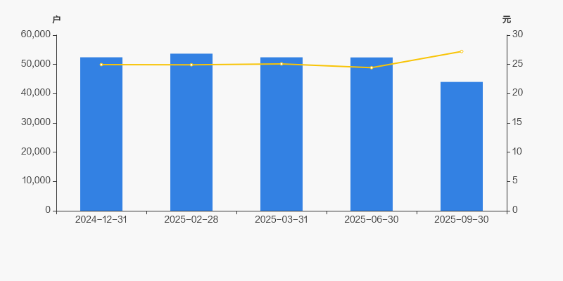 截至2025年9月30日,公司最新总股本为22.14亿股,且均为流通股。户均持有流通股数量由上期的4.23万股上升至5.03万股,户均流通市值136.88万元。