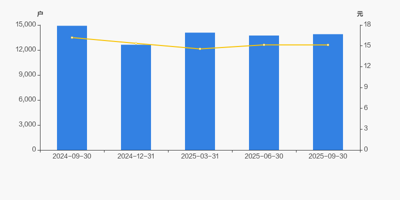 截至2025年9月30日,公司最新总股本为1.77亿股,其中流通股本为1.38亿股。户均持有流通股数量由上期的1.01万股下降至9963股,户均流通市值15.07万元。
