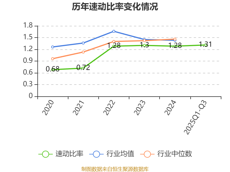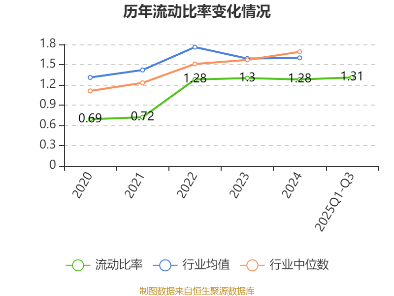 2025年前三季度,公司流动比率为1.31,速动比率为1.31。