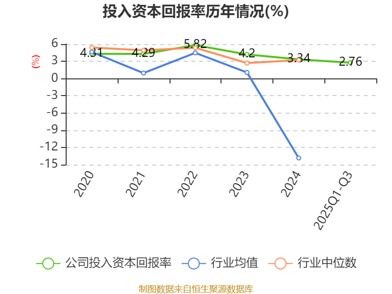 盈利能力方面, 2025年前三季度公司加权平均净资产收益率为4.81%,同比下降0.37个百分点。公司2025年前三季度投入资本回报率为2.76%,较上年同期下降0.52个百分点。