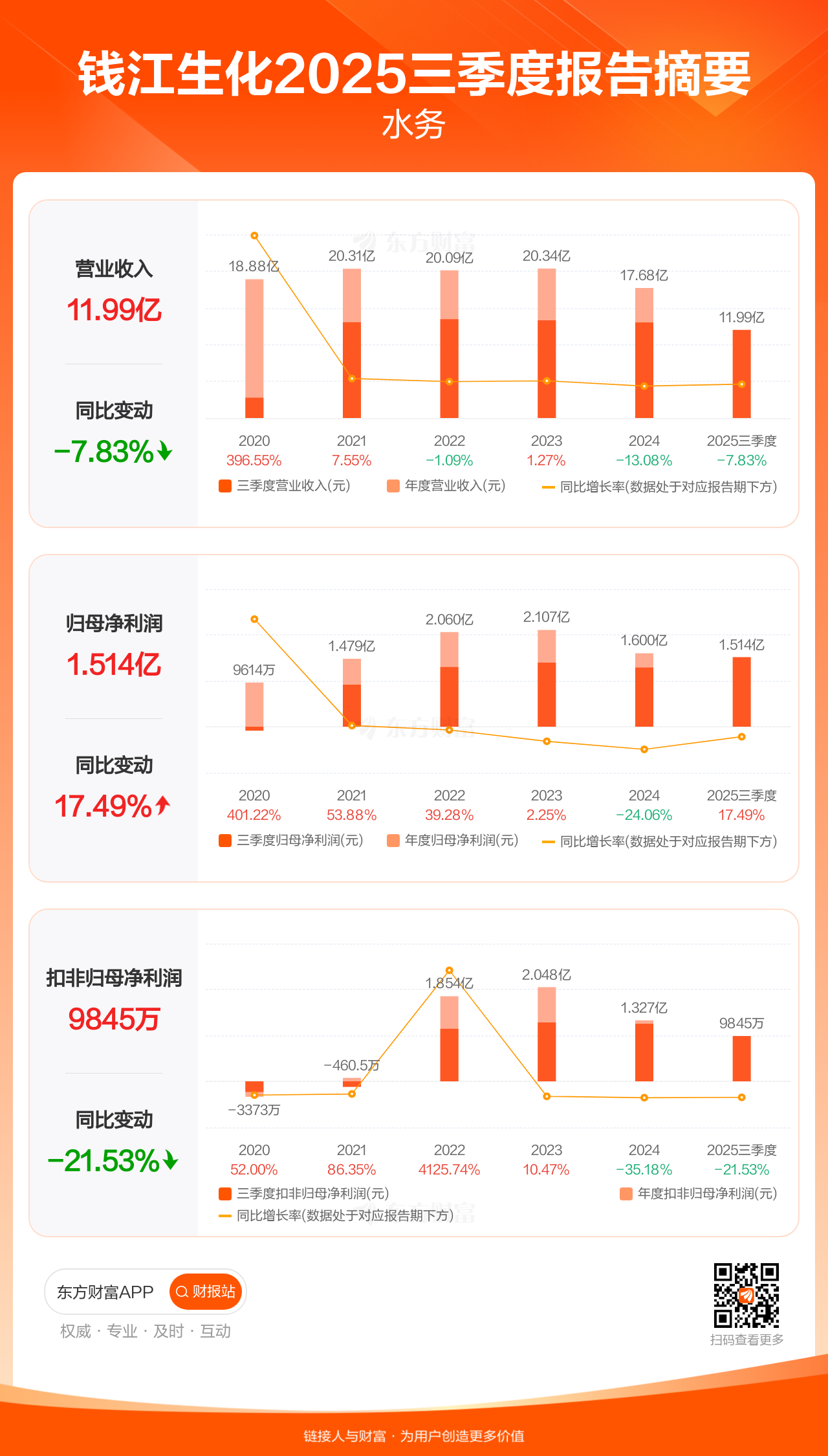 图解财报:钱江生化前三季归母净利润1.51亿元,同比增长17.49%