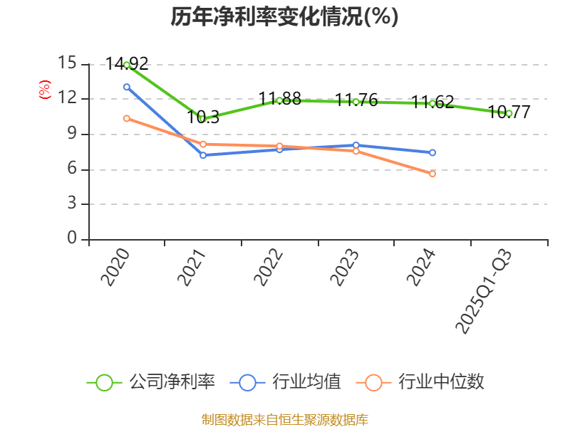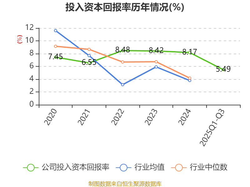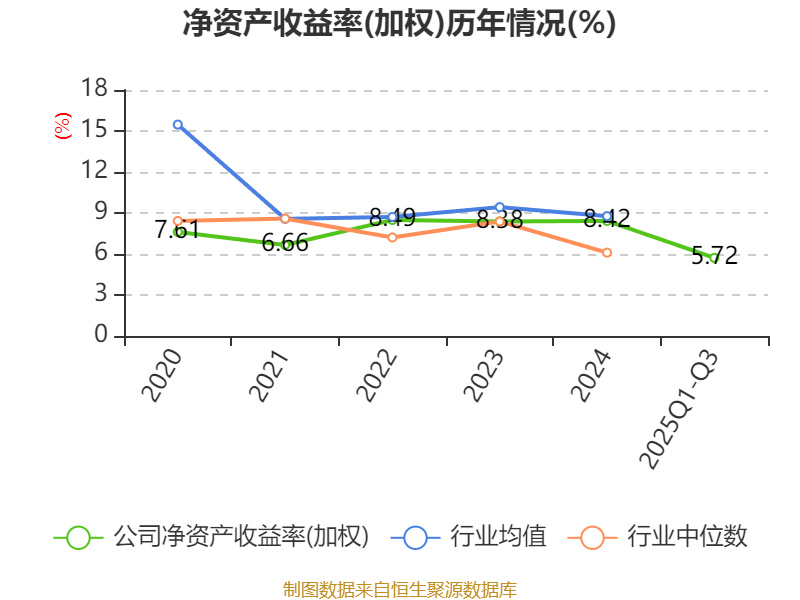 盈利能力方面, 2025年前三季度公司加权平均净资产收益率为5.72%,同比下降0.38个百分点。公司2025年前三季度投入资本回报率为5.49%,较上年同期下降0.43个百分点。