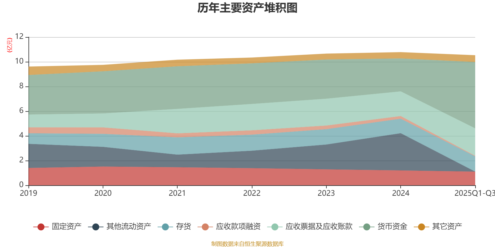 资产重大变化方面,截至2025年三季度末,公司其他流动资产较上年末减少99.99%,占公司总资产比重下降27.96个百分点;货币资金较上年末增加101.27%,占公司总资产比重上升26.27个百分点;应收票据及应收账款较上年末增加11.36%,占公司总资产比重上升2.6个百分点;应收款项融资较上年末减少80.42%,占公司总资产比重下降1.6个百分点。
