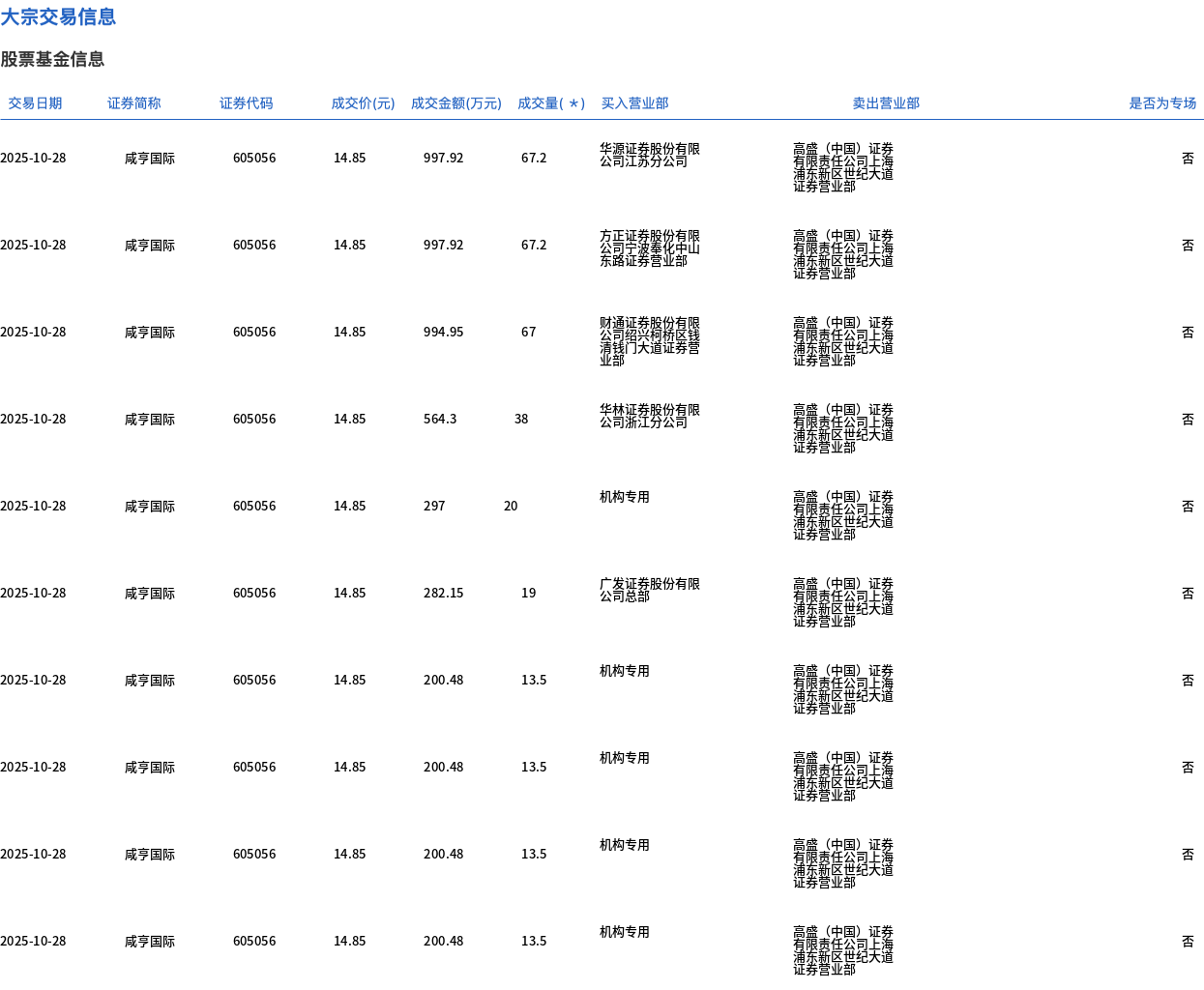 咸亨国际今日大宗交易折价成交359.4万股,成交额5337.12万元